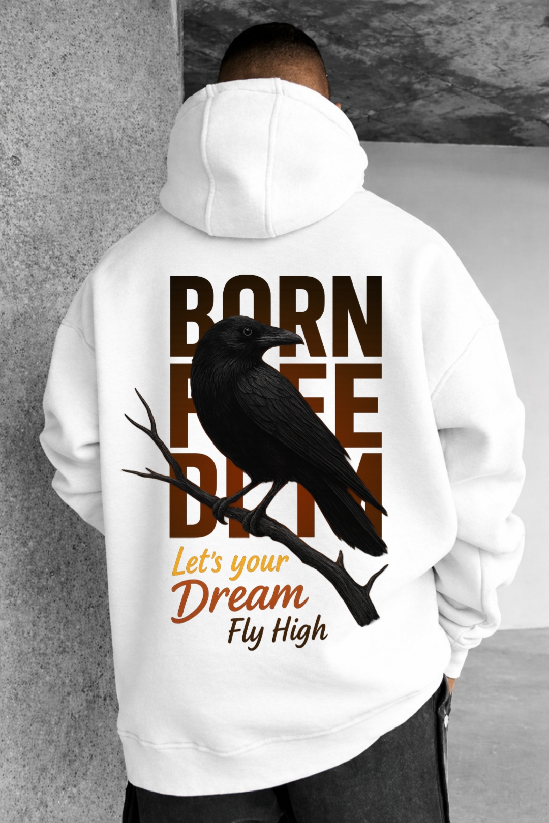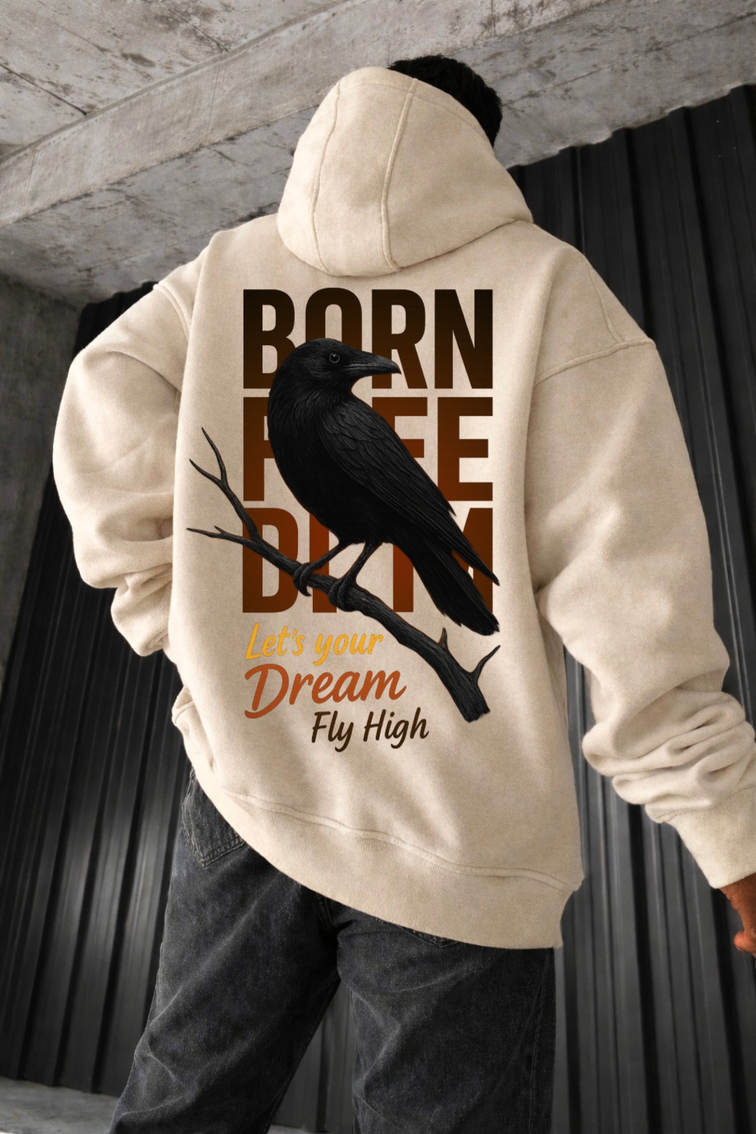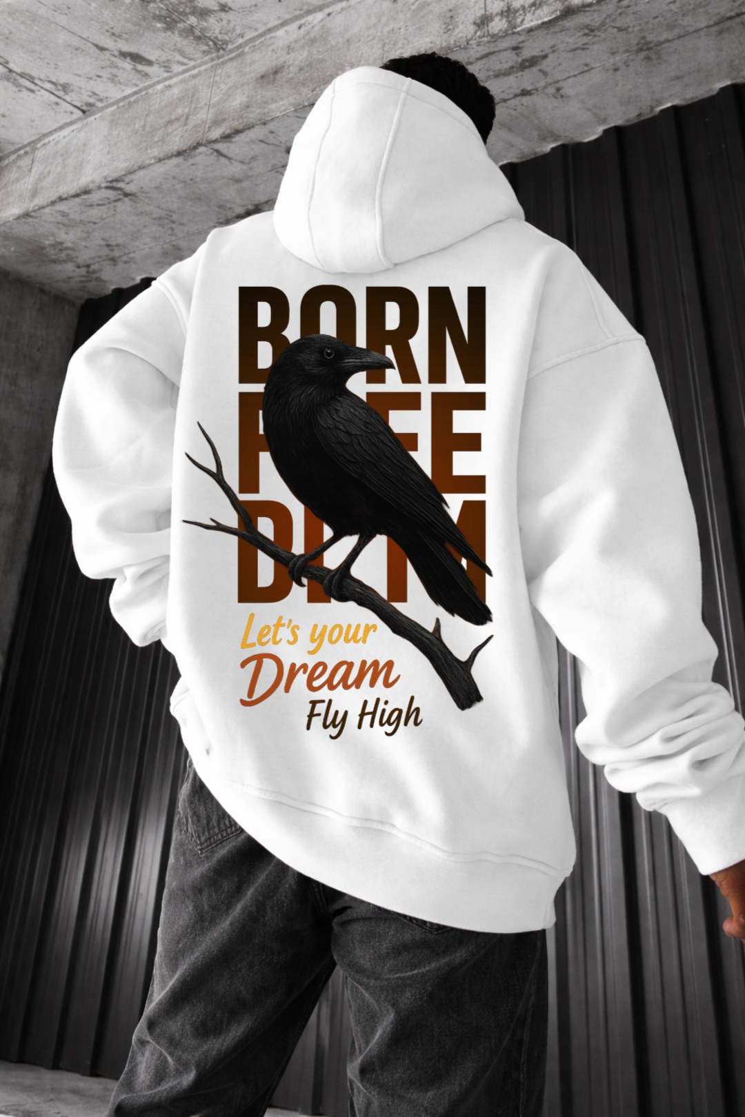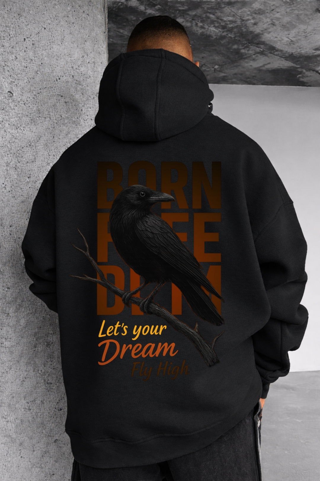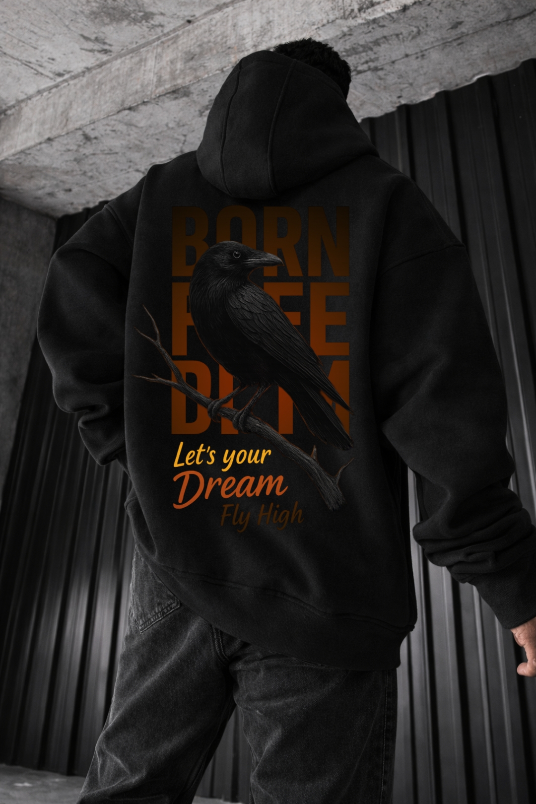 Crow Motivational Designed Oversized HoodieCrow Motivational Designed Oversized Hoodie