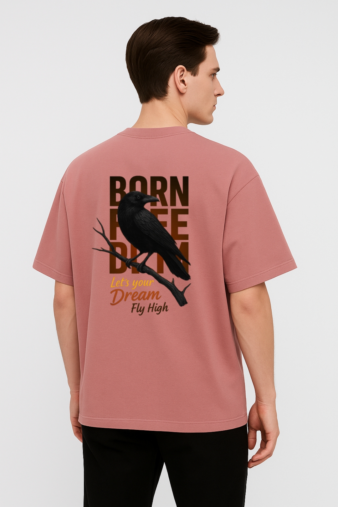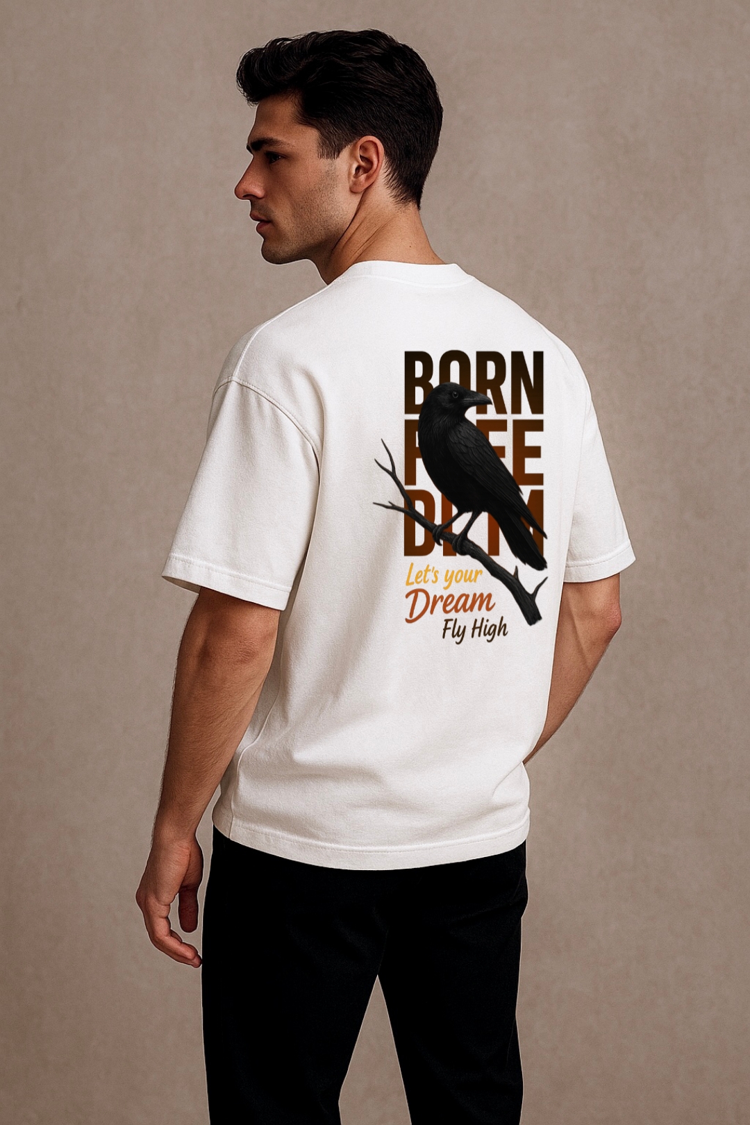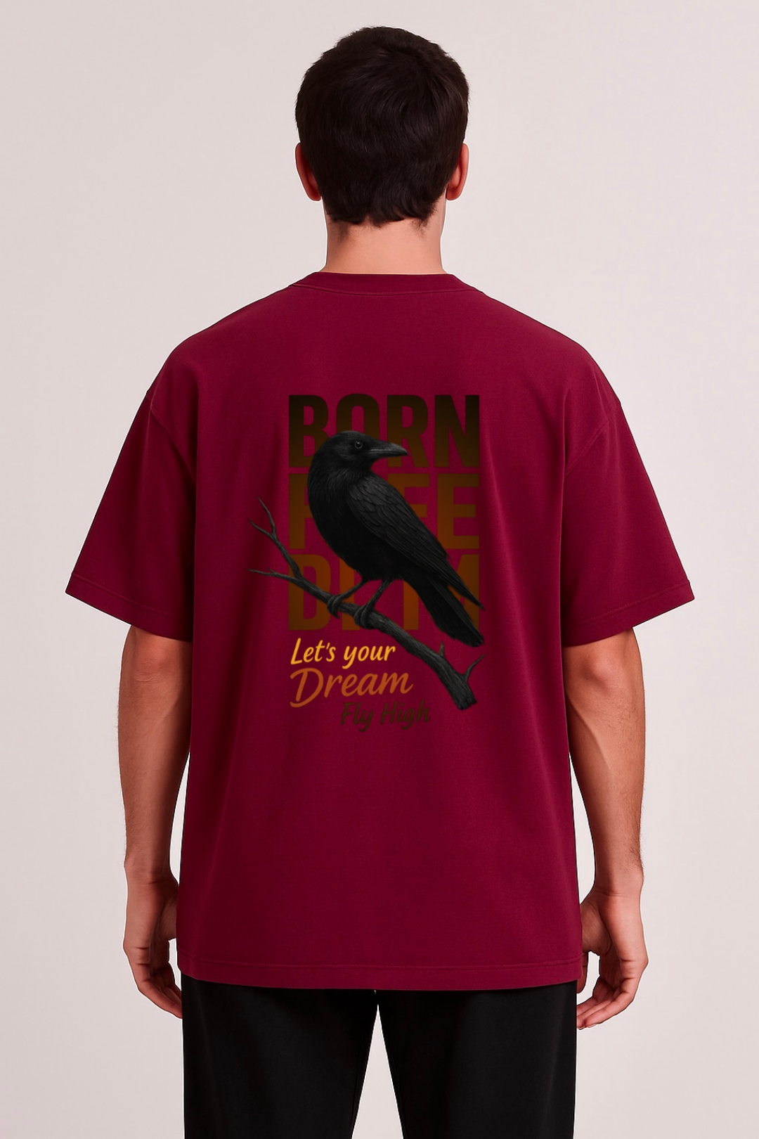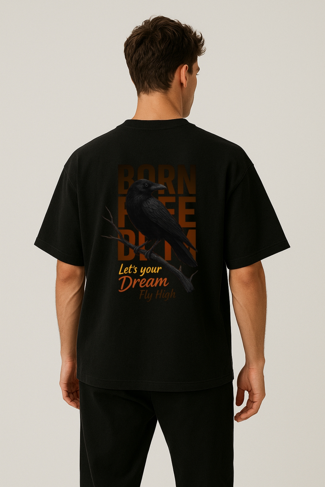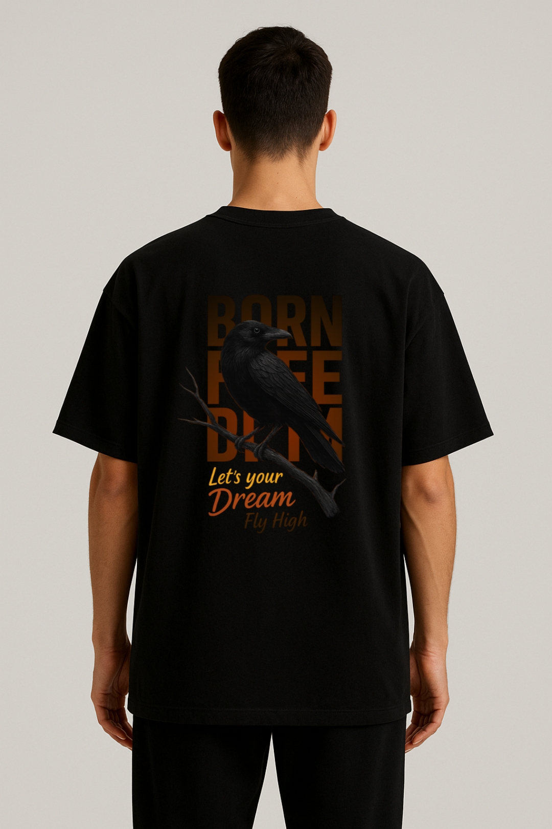 PsycheCanvas 100% Cotton French Terry T-shirt with Dark Kraven Graphic Print, Short Sleeve, Oversized, Crew Neck, DTF Print, Front and Back Design.