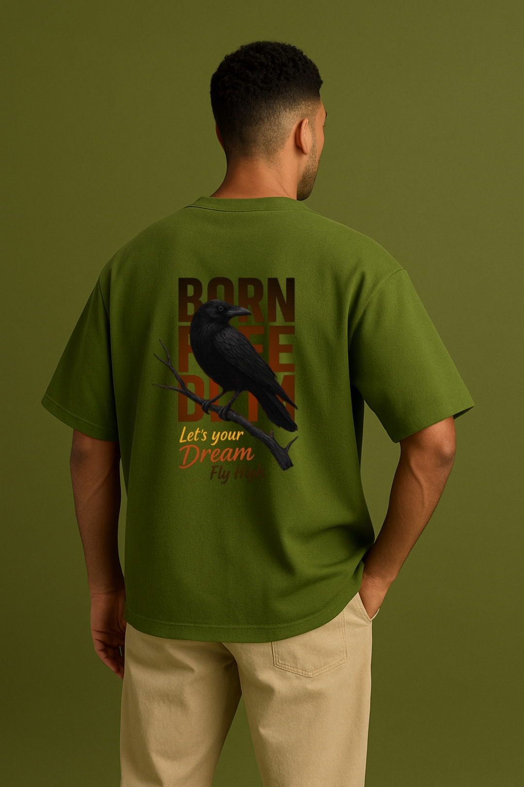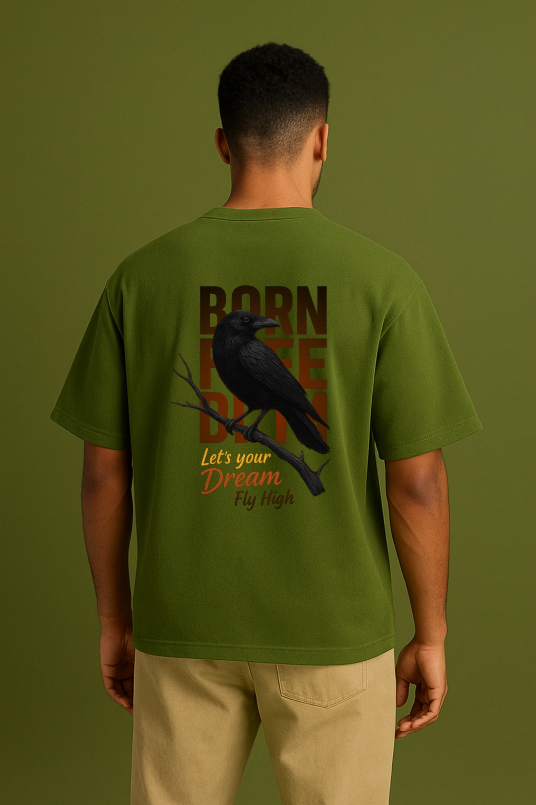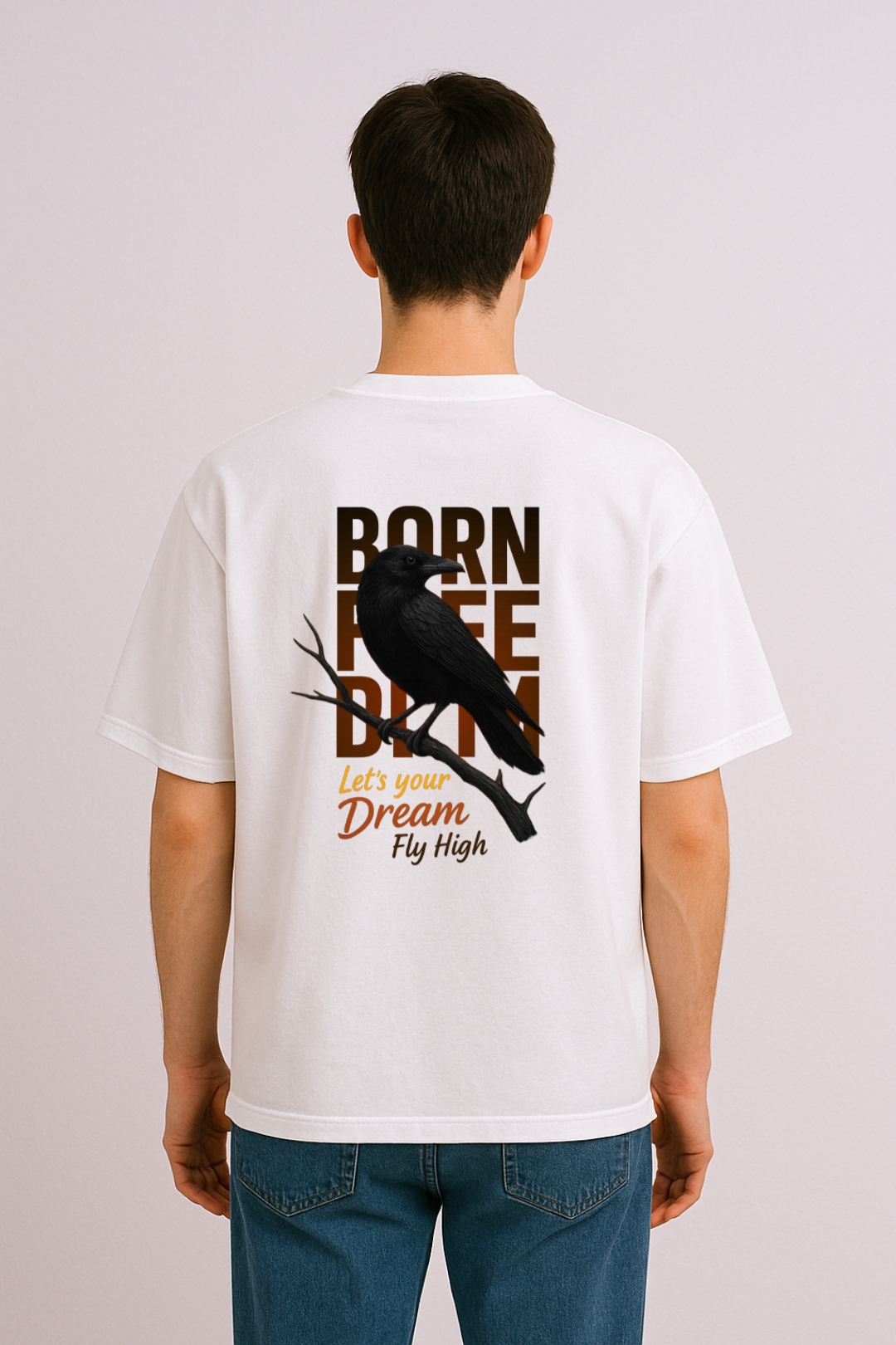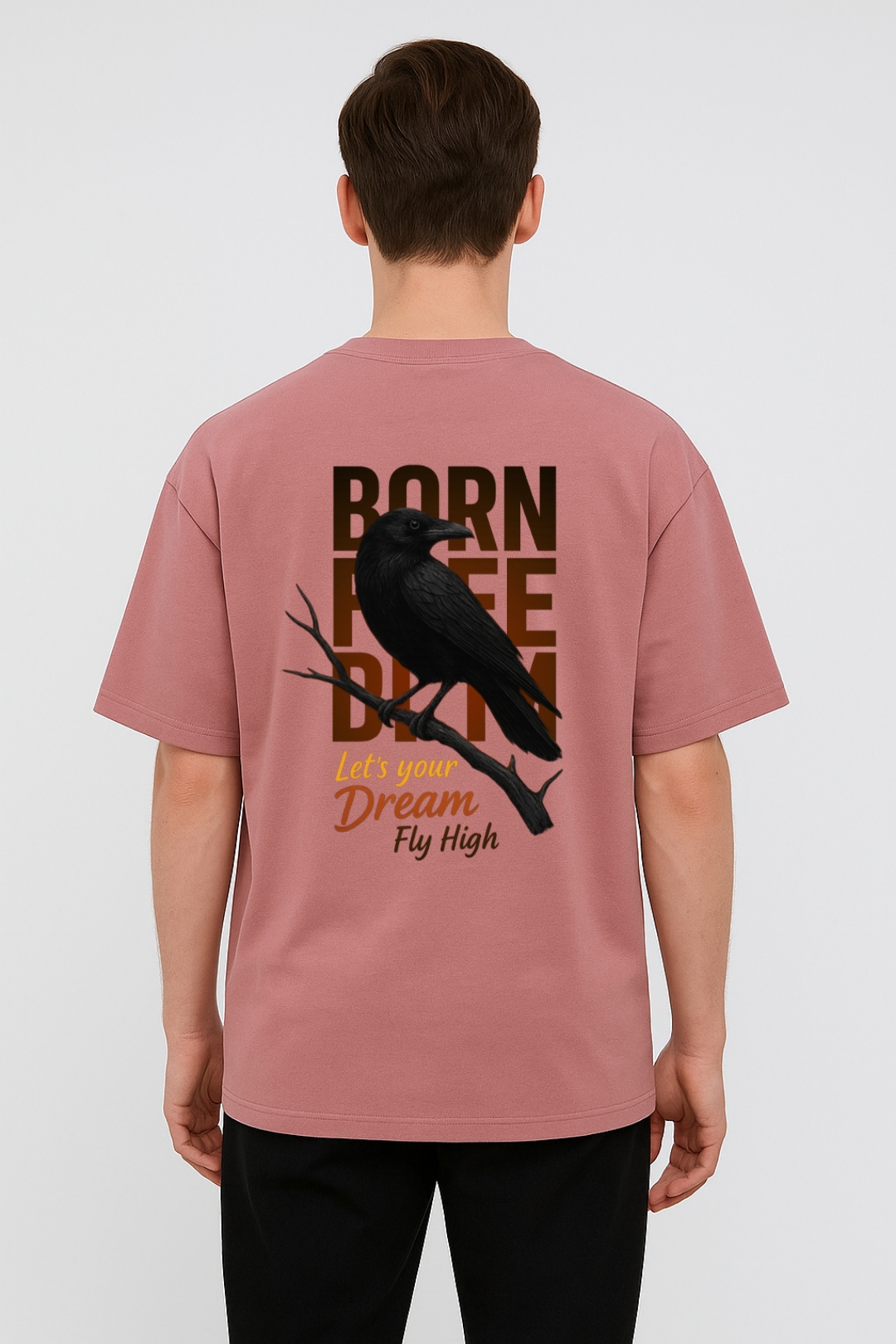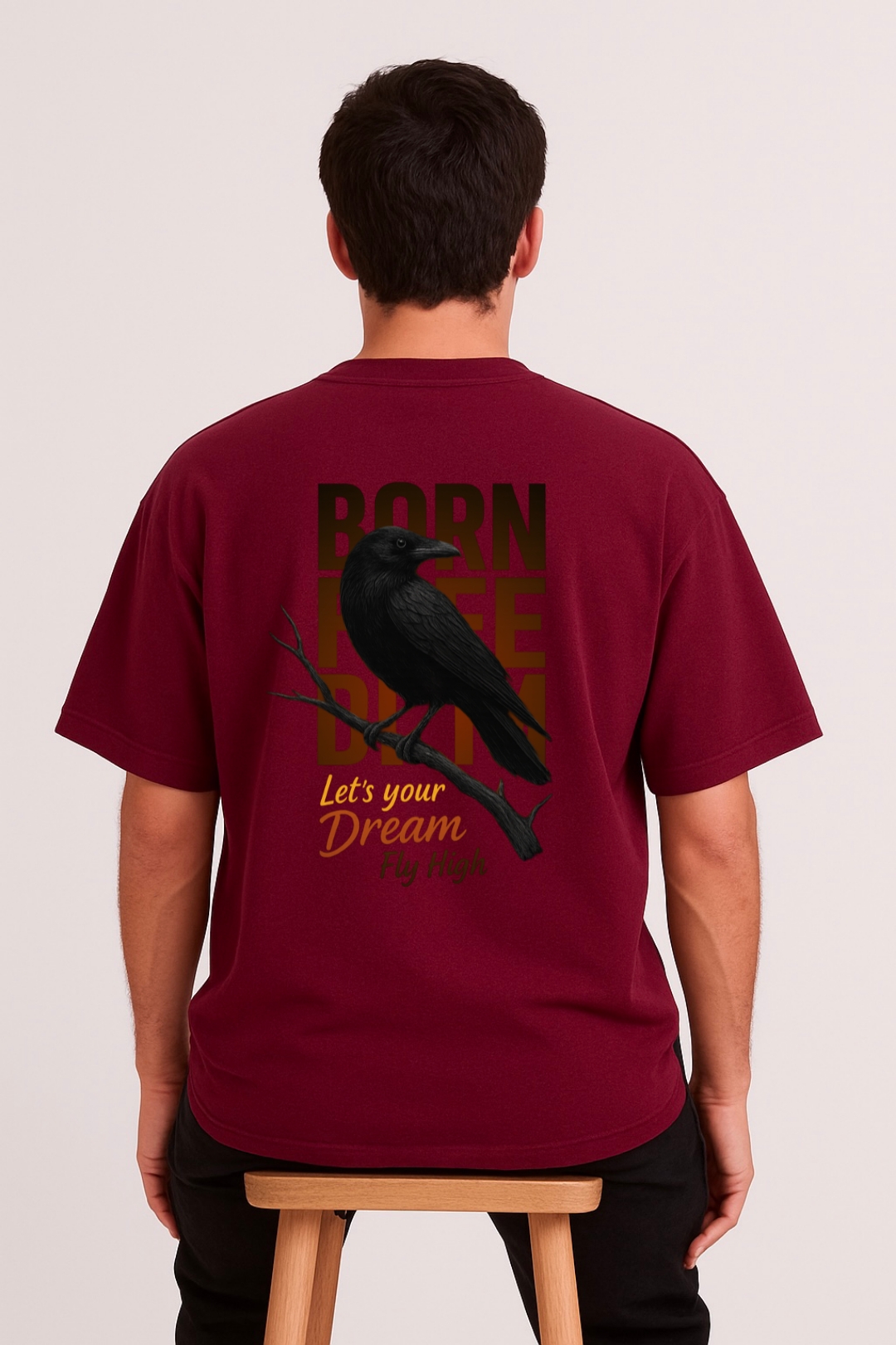 PsycheCanvas 100% Cotton French Terry T-shirt with Dark Kraven Graphic Print, Short Sleeve, Oversized, Crew Neck, DTF Print, Front and Back Design.