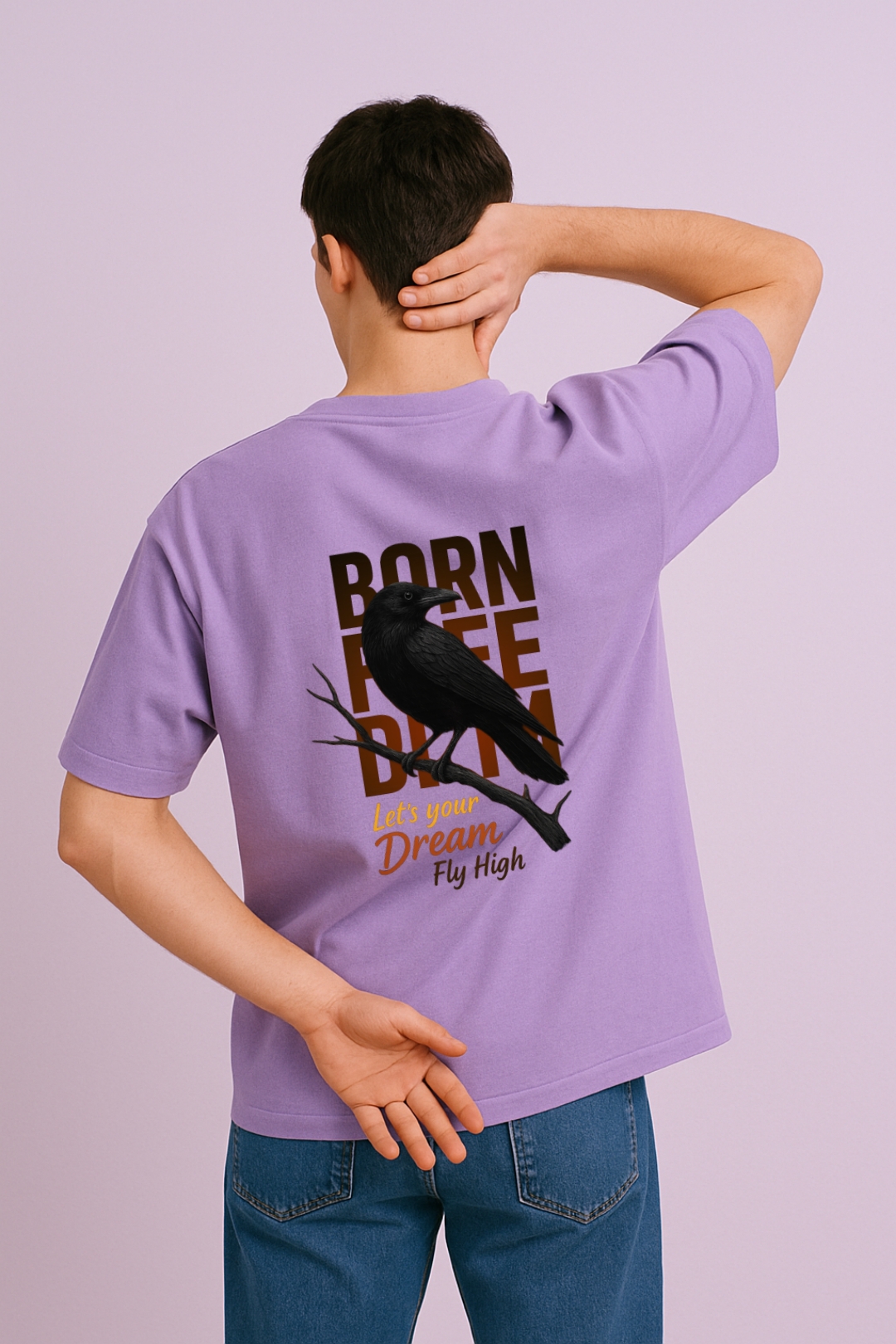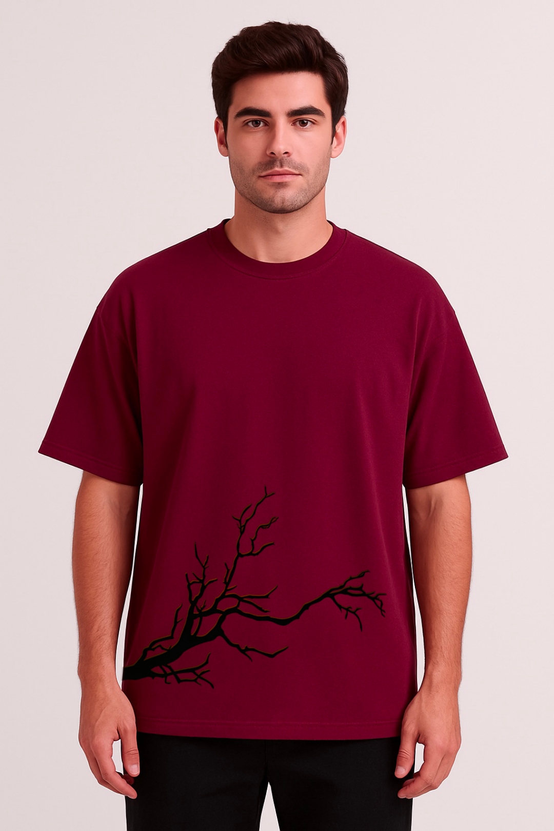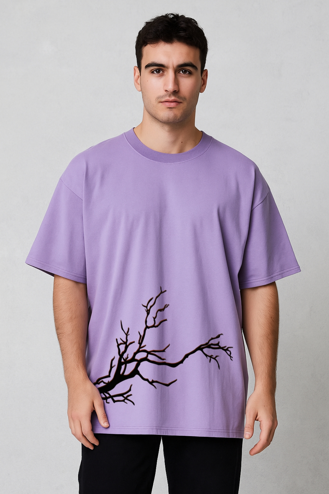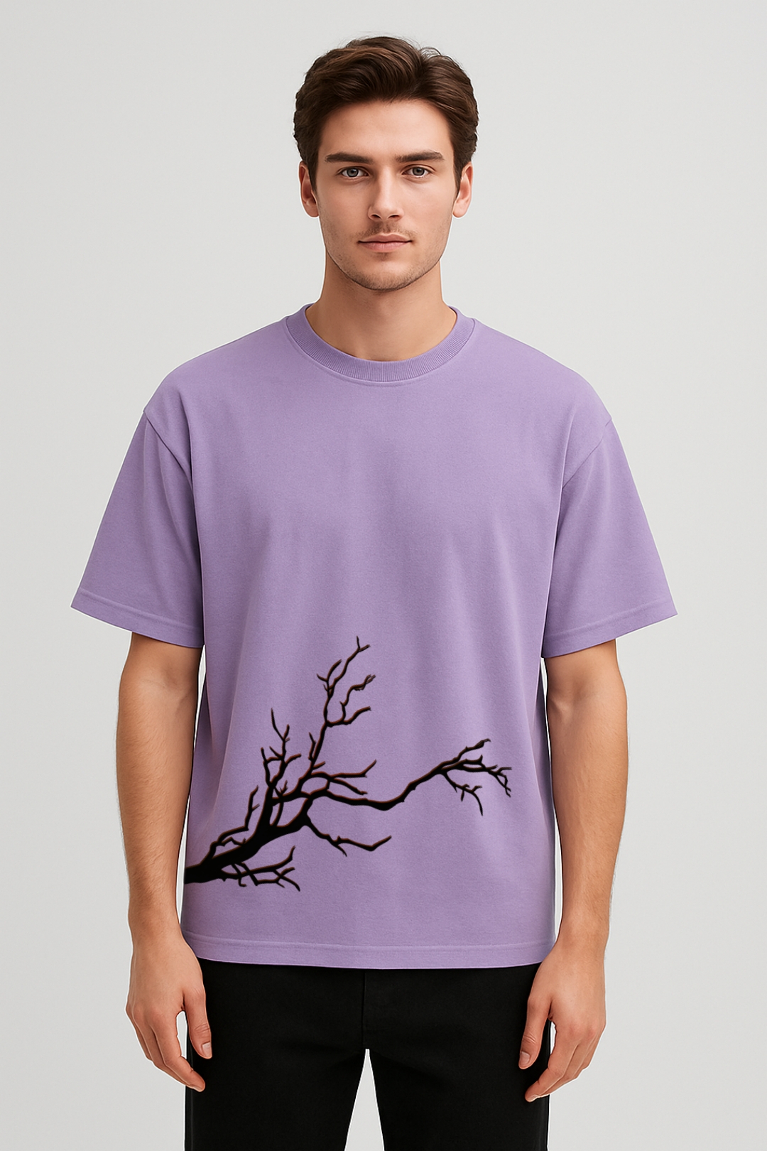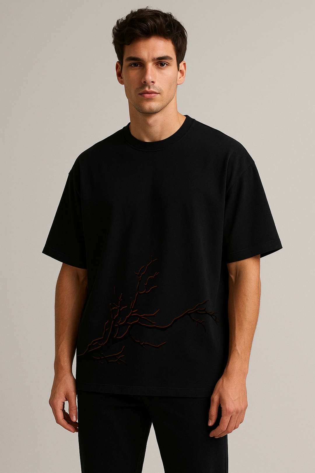 PsycheCanvas 100% Cotton French Terry T-shirt with Dark Kraven Graphic Print, Short Sleeve, Oversized, Crew Neck, DTF Print, Front and Back Design.