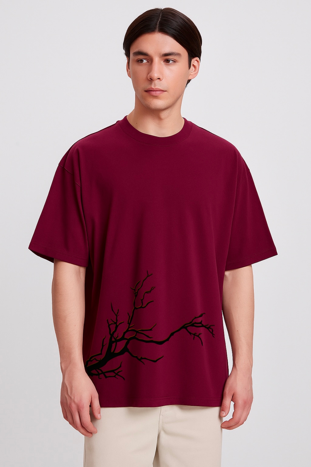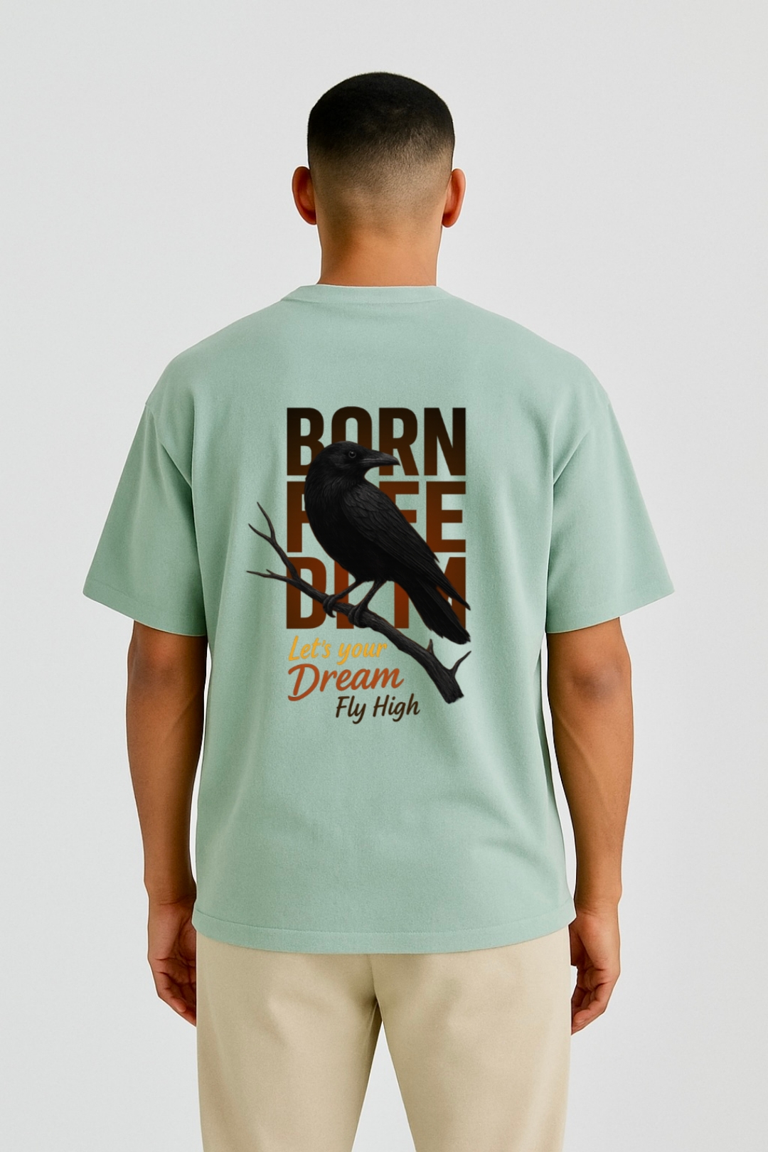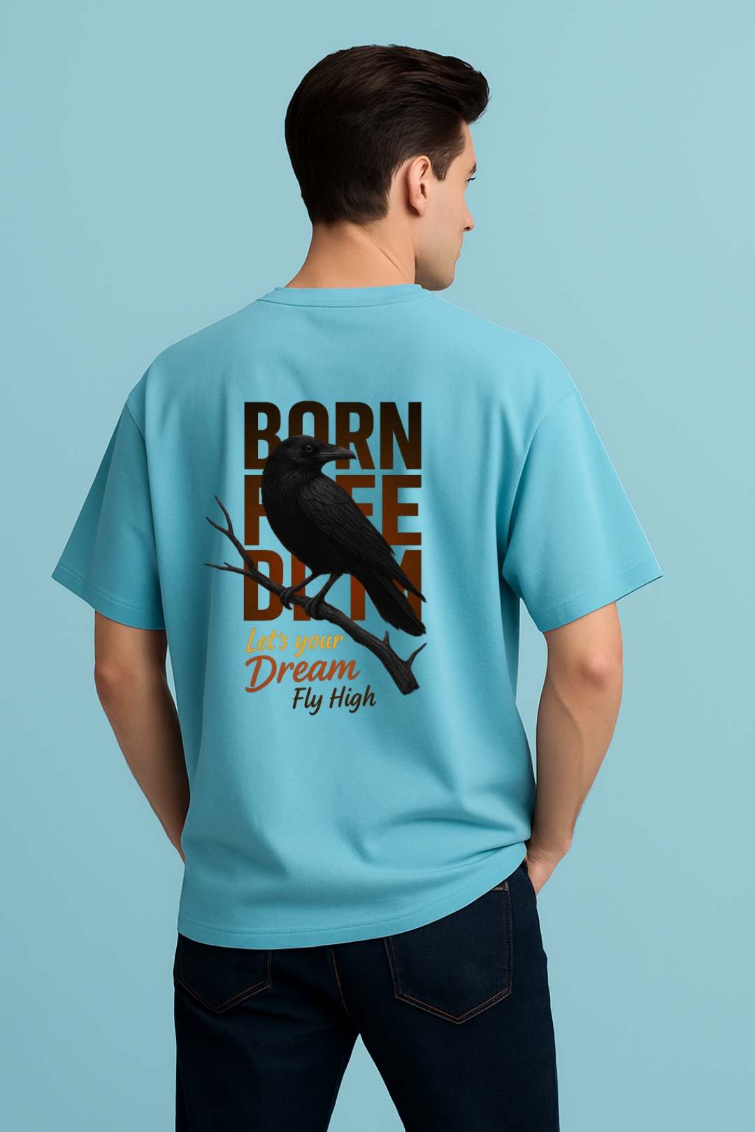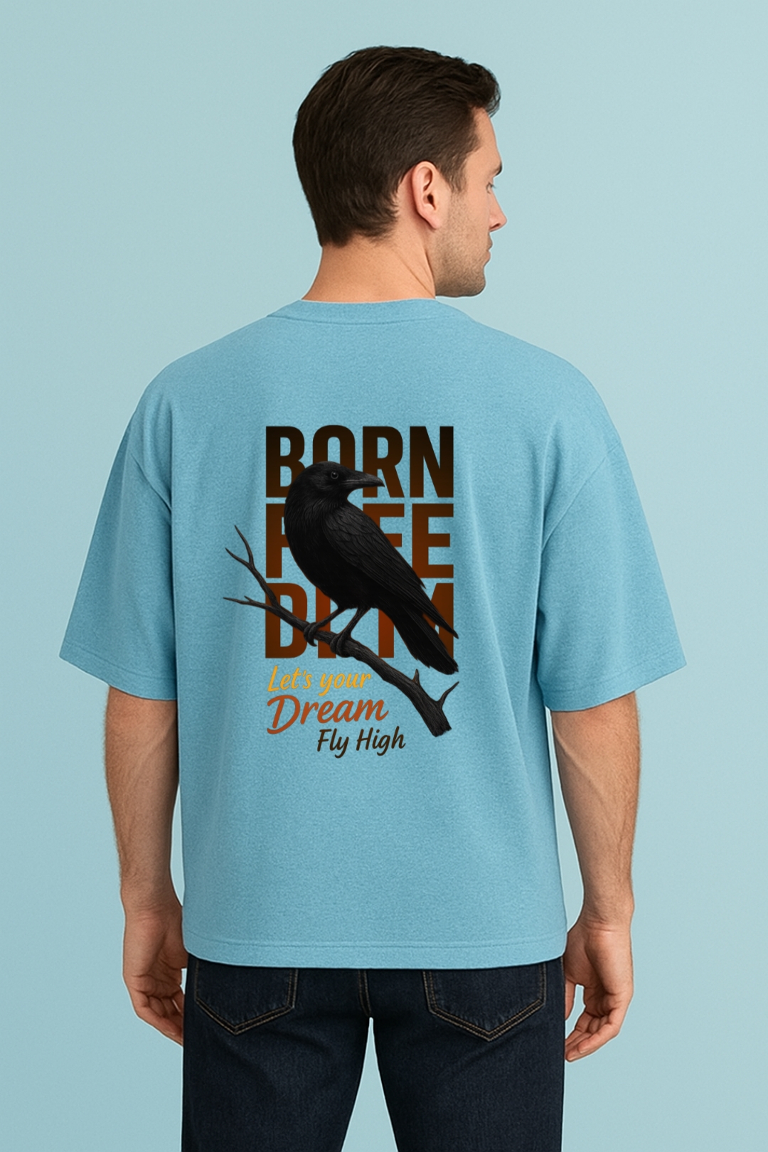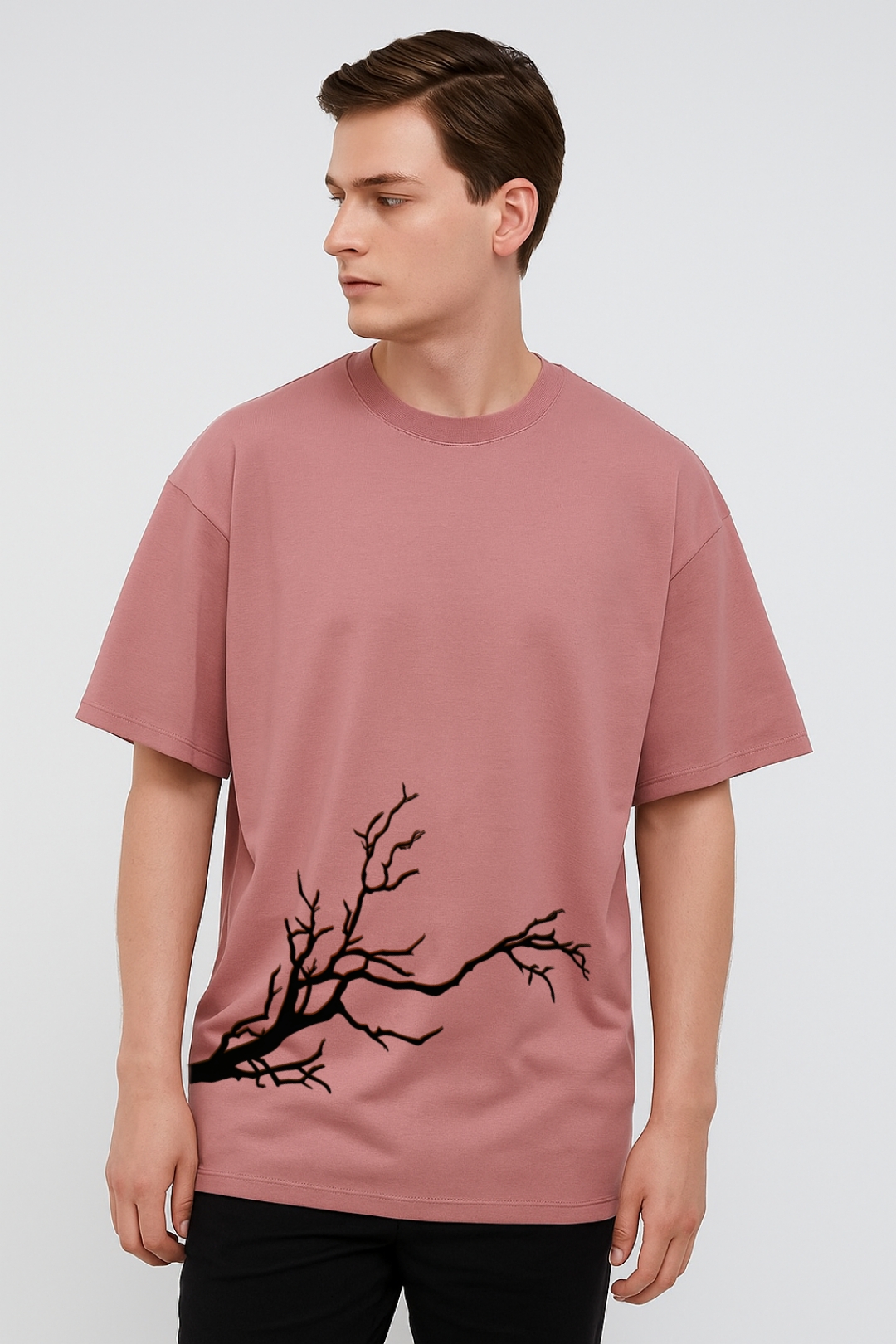 PsycheCanvas 100% Cotton French Terry T-shirt with Dark Kraven Graphic Print, Short Sleeve, Oversized, Crew Neck, DTF Print, Front and Back Design.