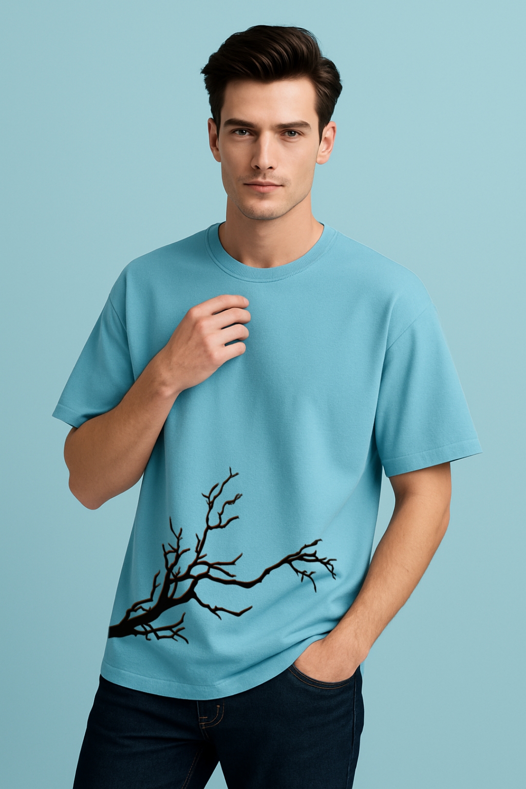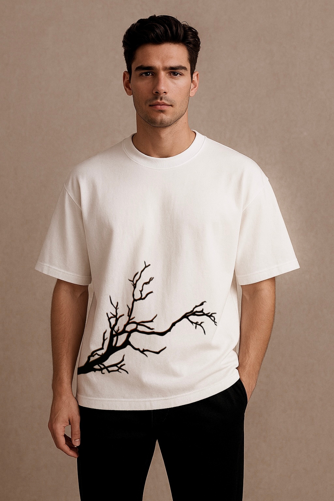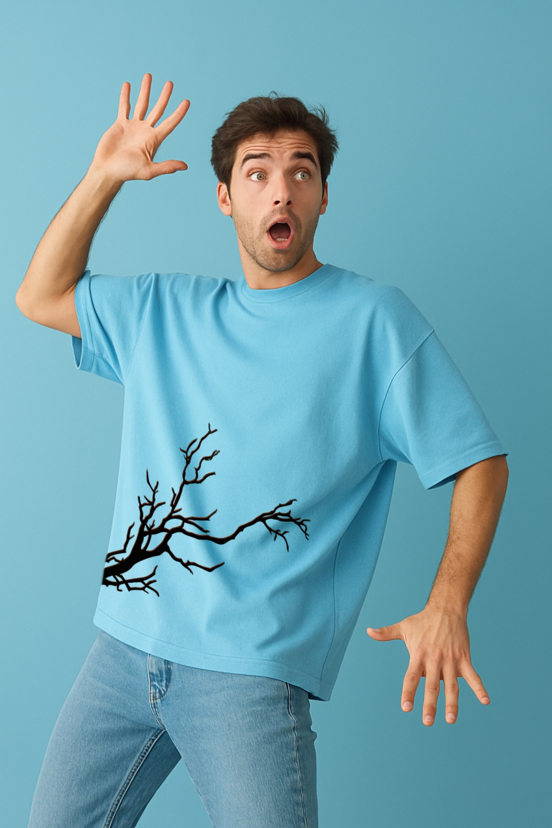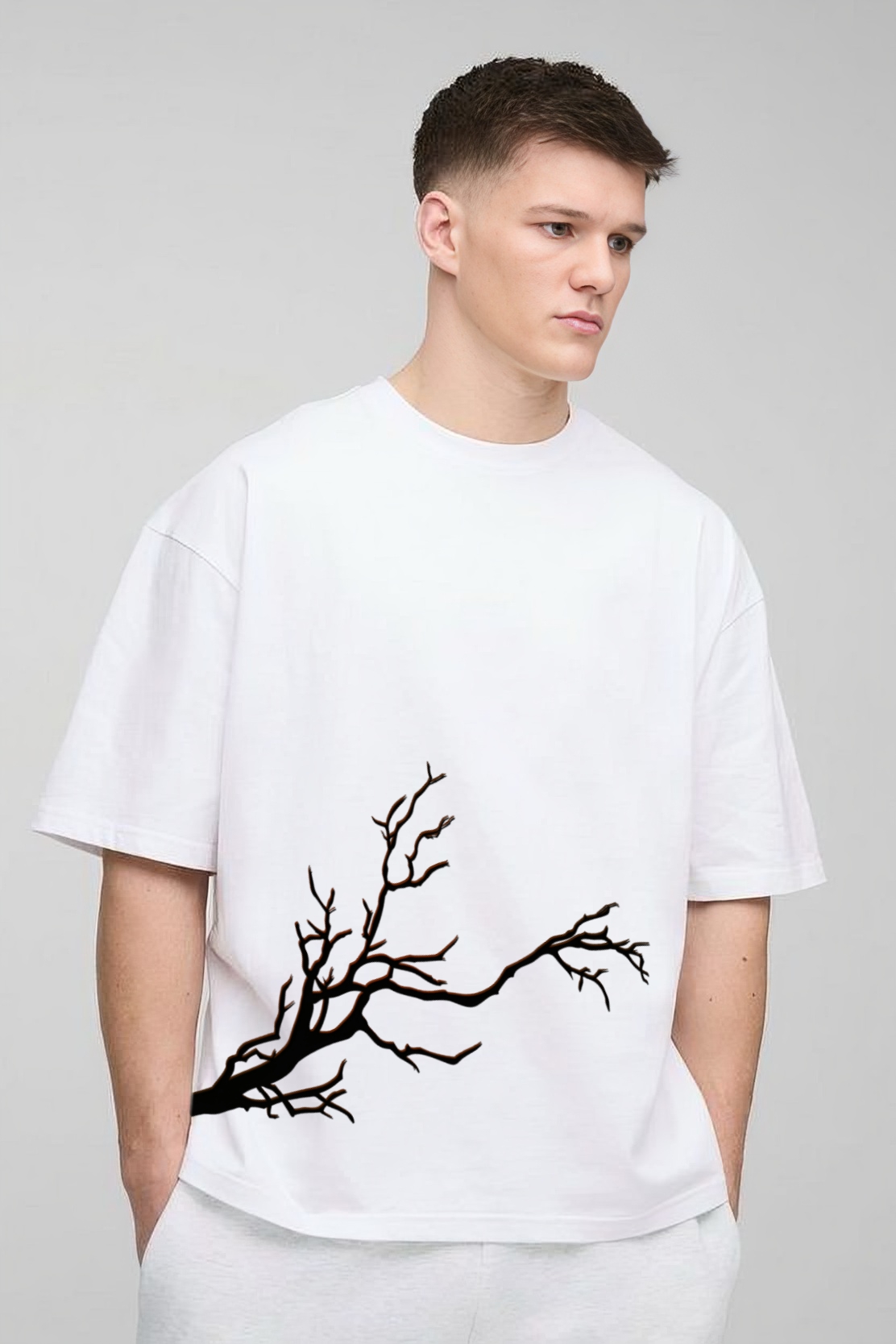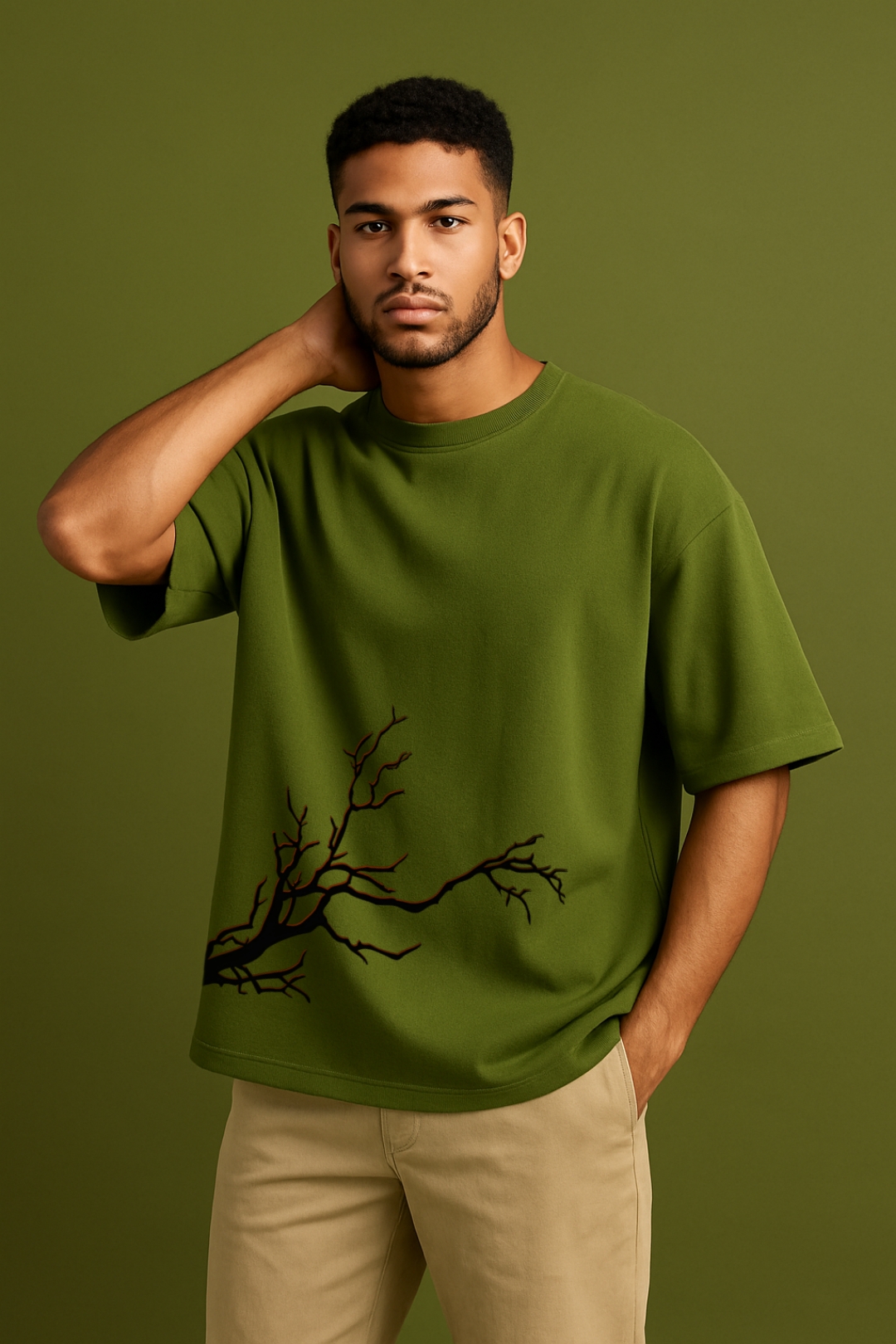 PsycheCanvas 100% Cotton French Terry T-shirt with Dark Kraven Graphic Print, Short Sleeve, Oversized, Crew Neck, DTF Print, Front and Back Design.